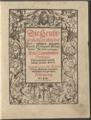 Lutero acolheu com entusiasmo um espírito afim que não tinha medo de se aventurar e, sob o feitiço de Lutero, catorze anos mais velho, o interesse de Melanchthon por teologia inflamava. Ele ajudou Lutero com o estudo do grego, participou ativamente da disputa de Leipzig, de 27 de junho a 8 de julho de 1519, e logo se viu na vanguarda da luta evangélica iniciada por Lutero. Seu interesse em teologia o levou a estudar para o diploma de bacharelado, que recebeu em Wittenberg em 1519; nas teses preparadas para esta ocasião, ele rejeitou a transubstanciação e defendeu a justificação pela fé e pela autoridade das Escrituras. Em 1521, quando Melanchthon escreveu o primeiro Loci, sua posição era a mesma de Lutero, refletida especialmente em sua visão do homem, a quem ele imaginava atolado em uma fossa de amor próprio, pecador demais para ser capaz de qualquer coisa, exceto hipocrisia. A menos que vencido por Cristo, ele declarou, esse amor próprio bloqueia o livre arbítrio no homem no que diz respeito à justificação.